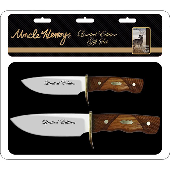 This combination set of three folding knives packaged in a silver tin case will make any guy happy.